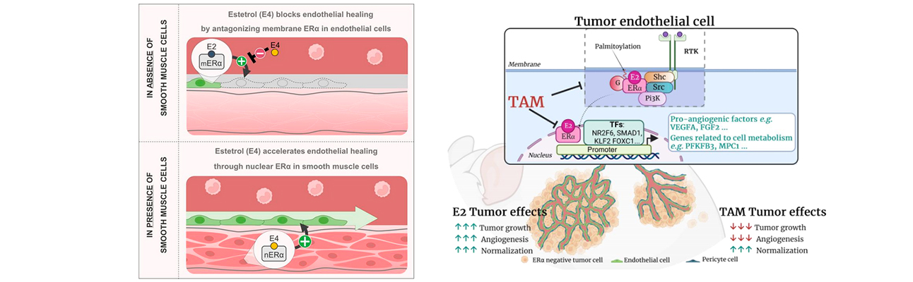 The EstER team is dedicated to promote women's health by unraveling the molecular mechanisms underlying estrogen signaling, with a particular focus on the actions of estrogen receptor (ER)α, the primary receptor mediating estrogen effects. Over the past 20 years, our team has been a pioneer in understanding the molecular actions of the ERα receptor at both the membrane and nuclear levels. By integrating cutting-edge molecular biology techniques, original and unique transgenic models, pharmacological tools, we aim to optimize ERα selective modulation to maximize therapeutic benefits while minimizing associated risks. We will summarize these findings, focusing on the mode of actions of Estetrol, a new fetal estrogen developed for contraception and on the tamoxifen, used for breast cancer treatment.
